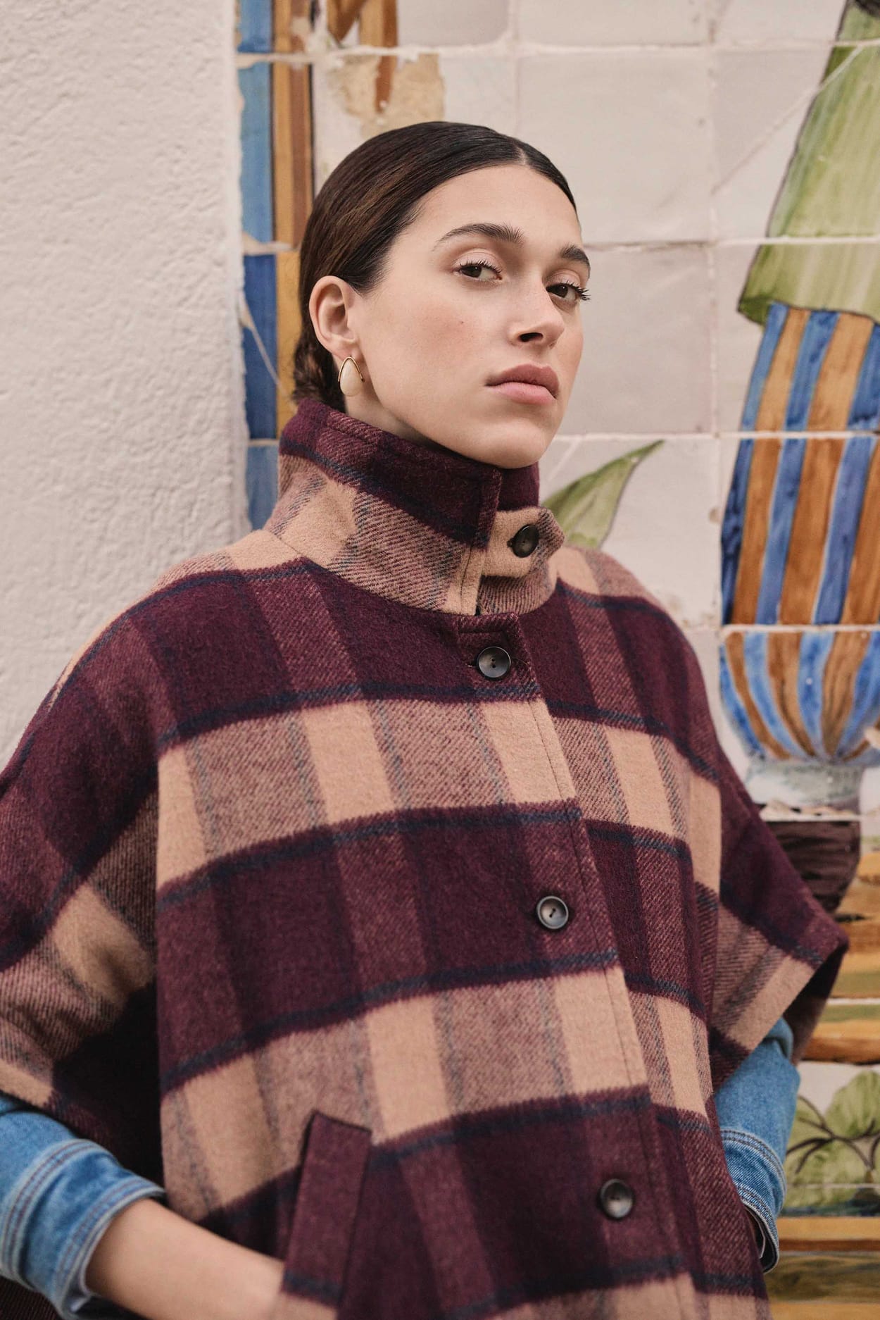 DOLLY Checked Cape Coat;${refinementColor}