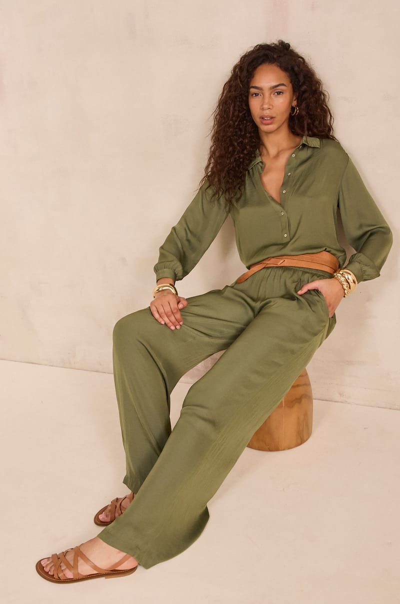Discover the wide TOBIAS pants and its fluid satin fabric....