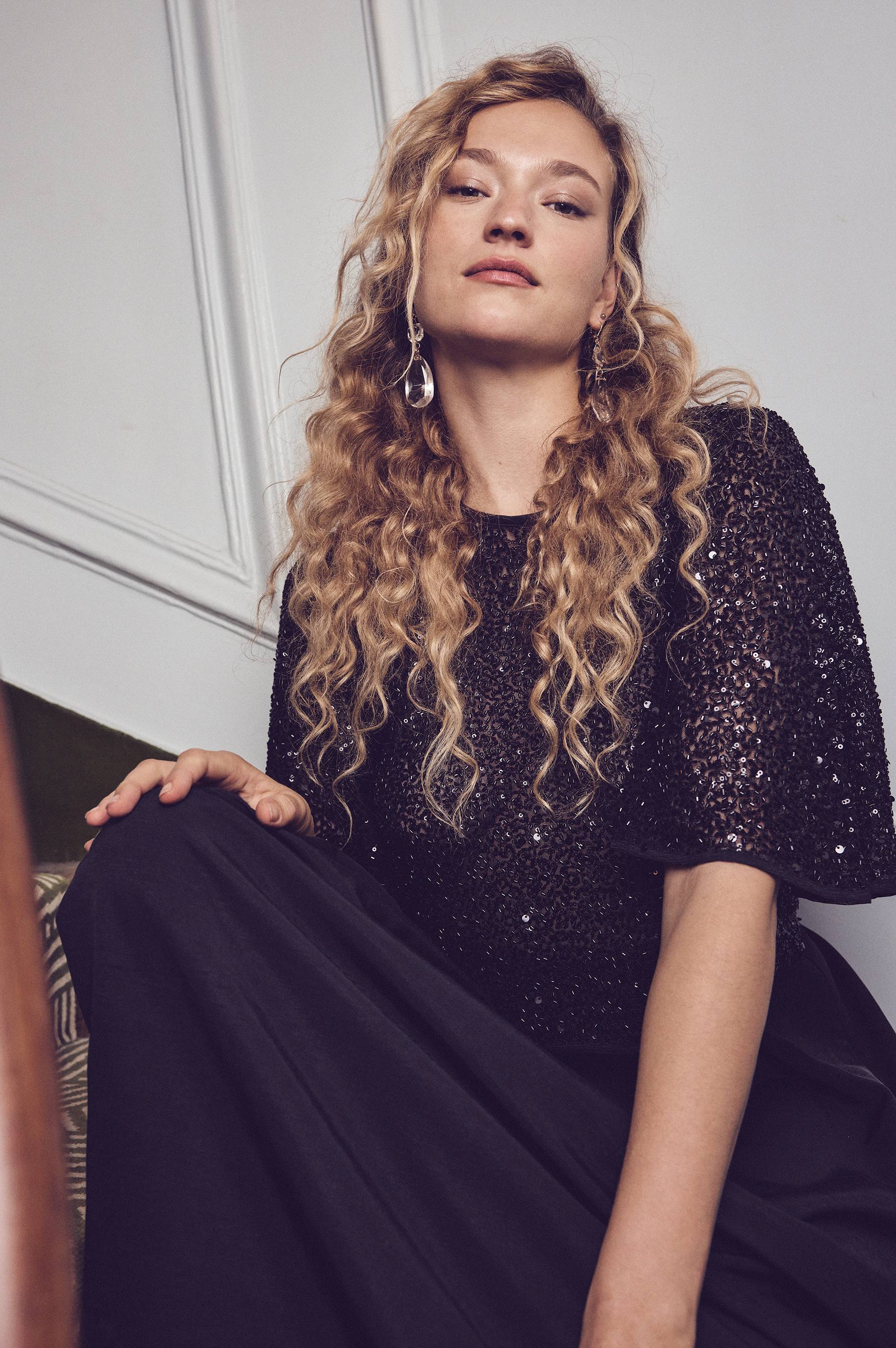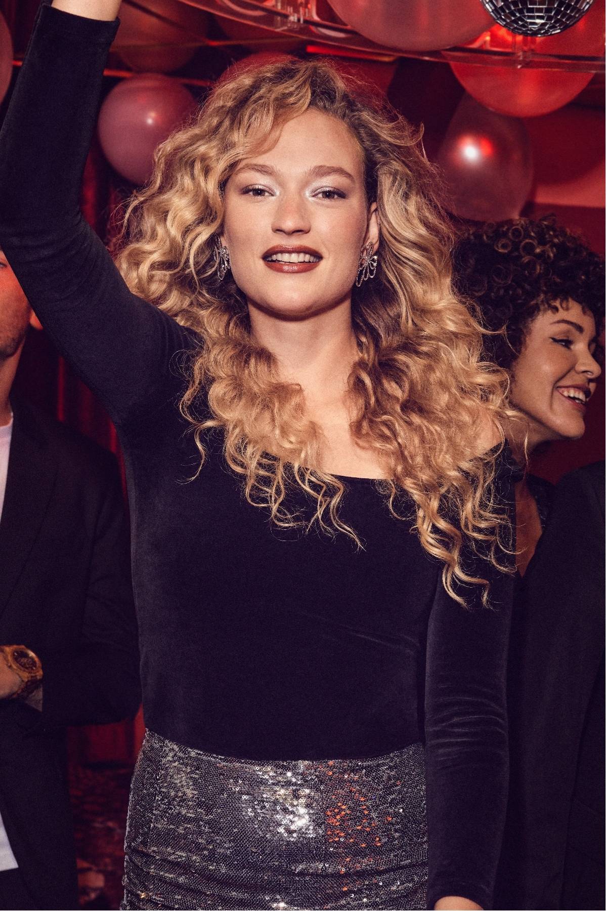 Verfallen Sie der zeitlosen Eleganz des Samts, der Ihren festlichen Outfits Raffinesse und Sinnlichkeit verleiht. Fangen Sie in dieser Saison das Licht mit purer Eleganz ein.