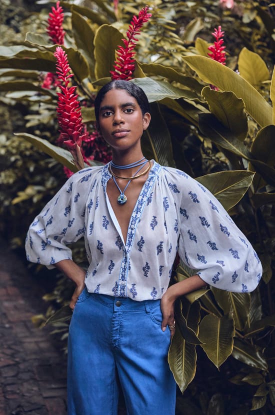 MANDIE V-neck blouse in cotton;${refinementColor}