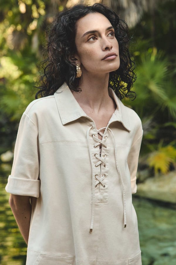 BLANCHE short straight dress in blended cotton;${refinementColor}