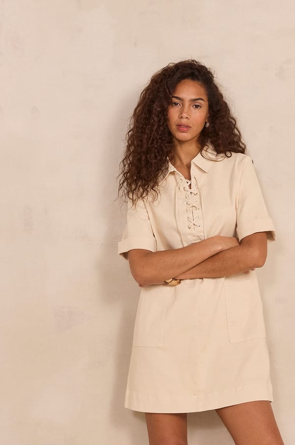 Short straight dress in mixed cotton WHITE;${refinementColor}