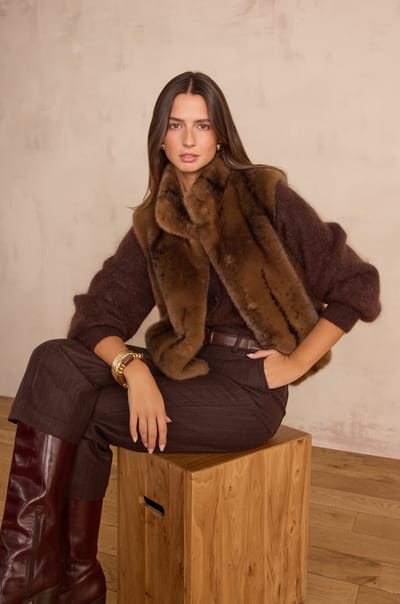 • SUZANNE Fluffy Sleeveless Cardigan;${refinementColor}