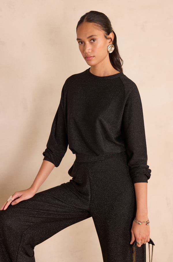 Long-sleeved sequined top FLAMME;${refinementColor}