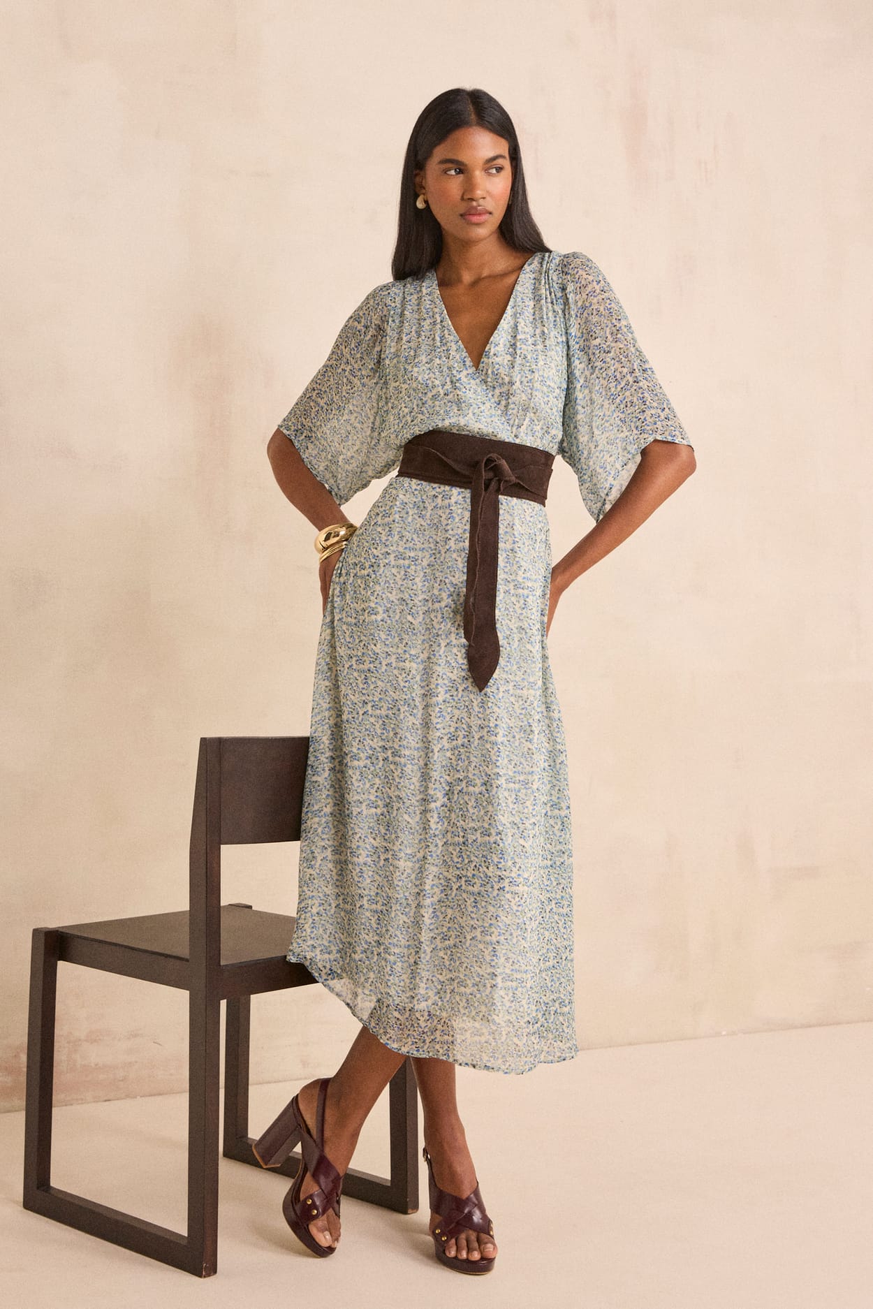 • BERTILLE pleated wrap midi dress;${refinementColor}