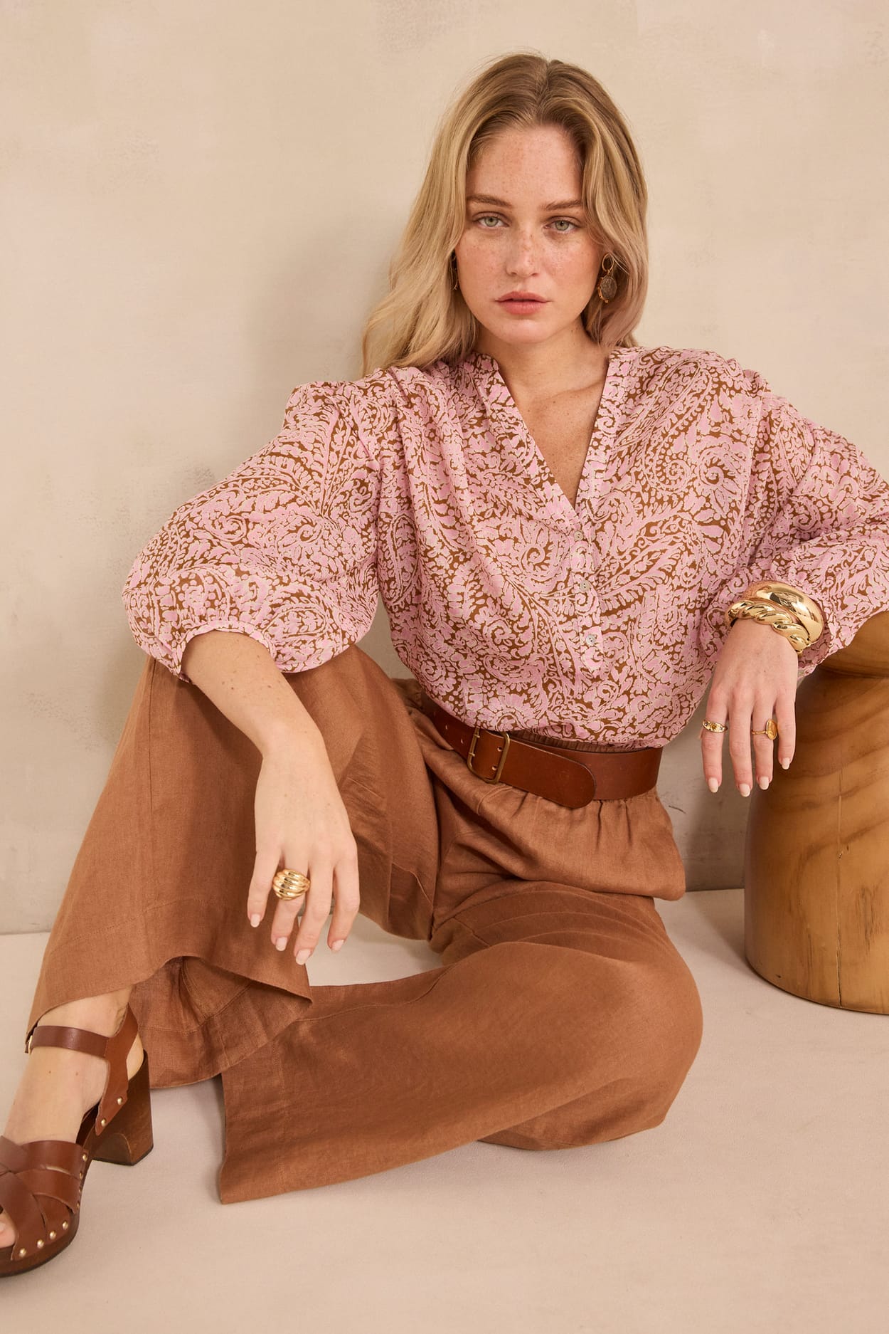 DEVONA long-sleeve printed cotton blouse