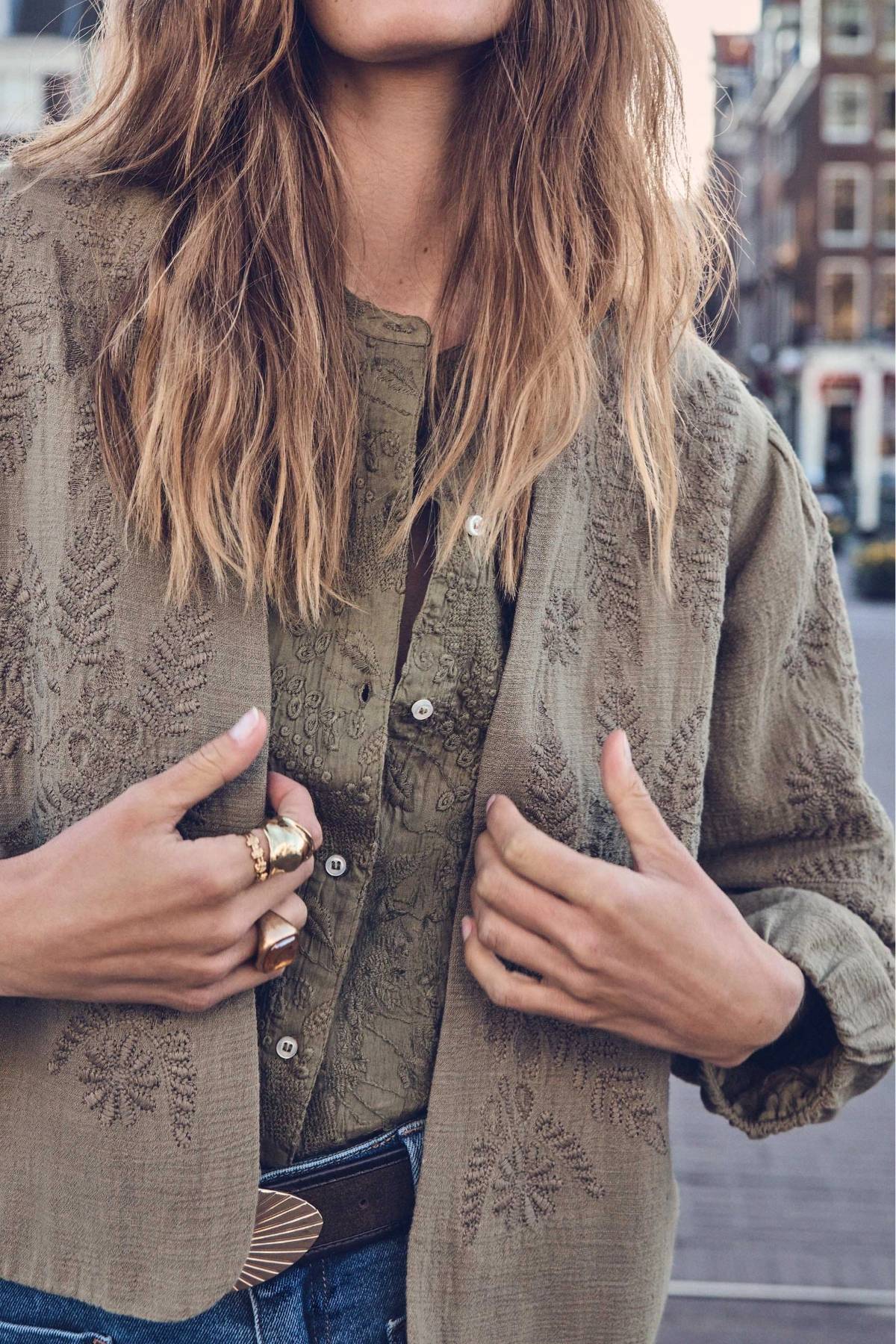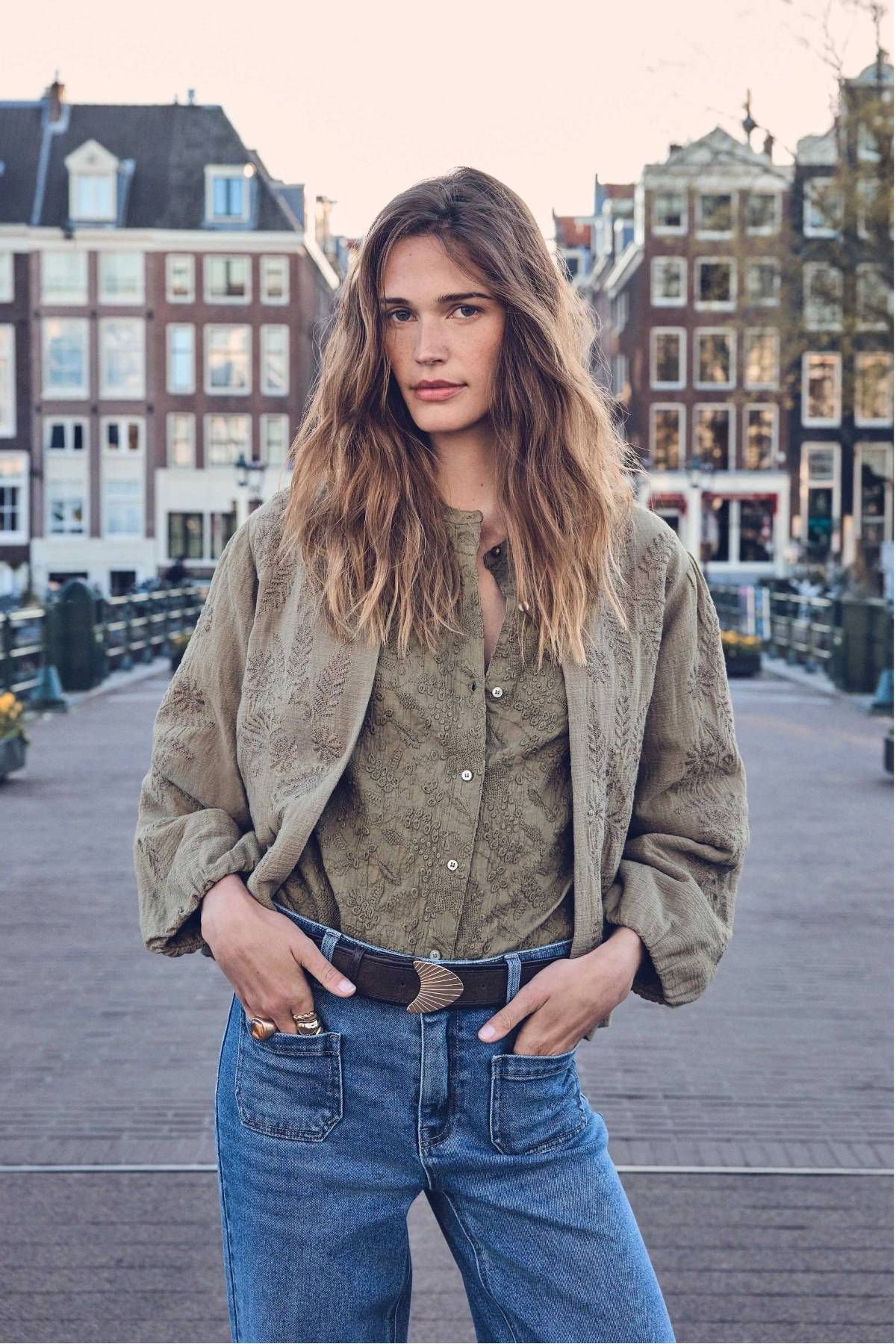 Let yourself be carried away by the poetry of our prints. We reinvent the toile de Jouy print in a vegetal, light, and pure version. These patterns are drawn on the immaculate cotton of our shirts and dresses in khaki or blue shades, strikingly timeless.